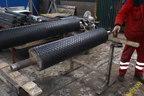 Rubber Lagging: Diamond or chevron grooved surfaces for traction and self cleaning